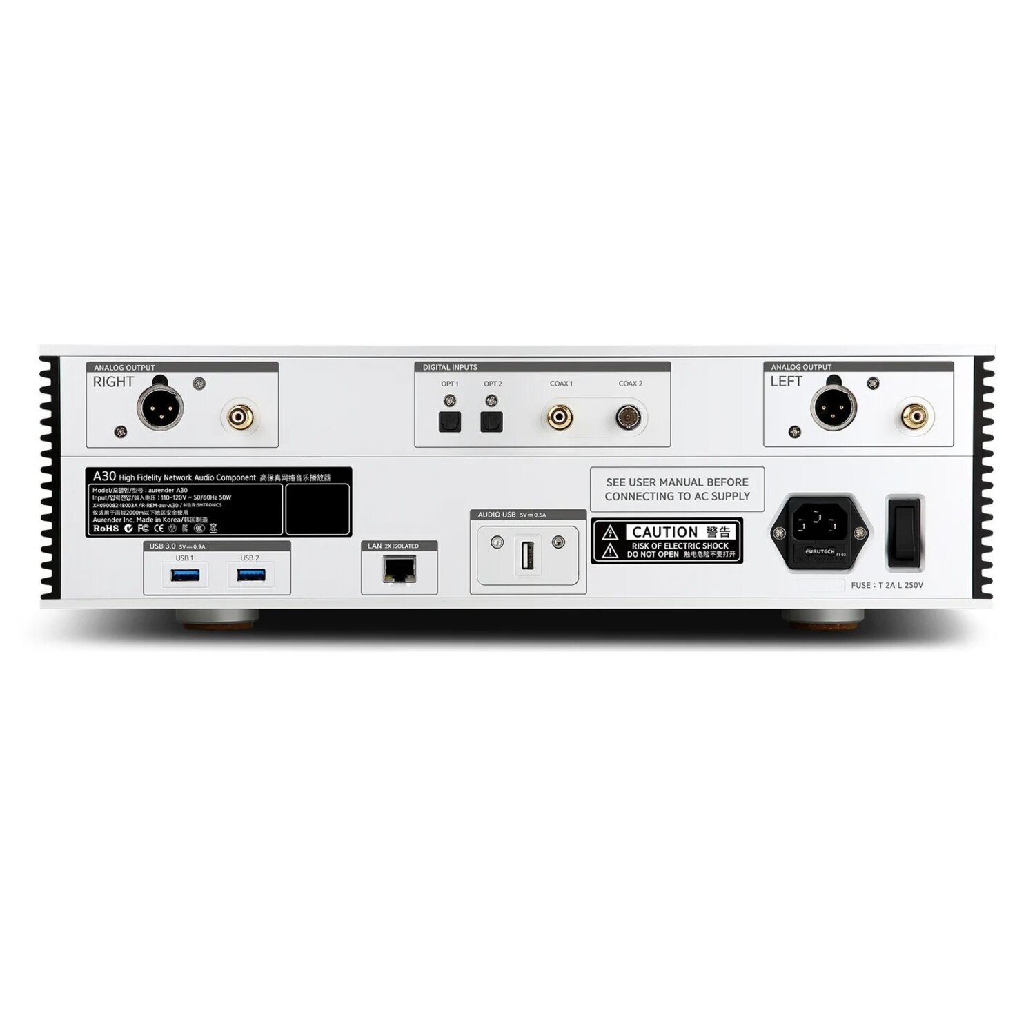 The dedicated USB Audio Class 2.0 output is designed to deliver an exceptionally transparent audio signal free of noise, and is shielded from outside electronic interference. It can be used, for example, to allow the A30 to source a different DAC for another system.