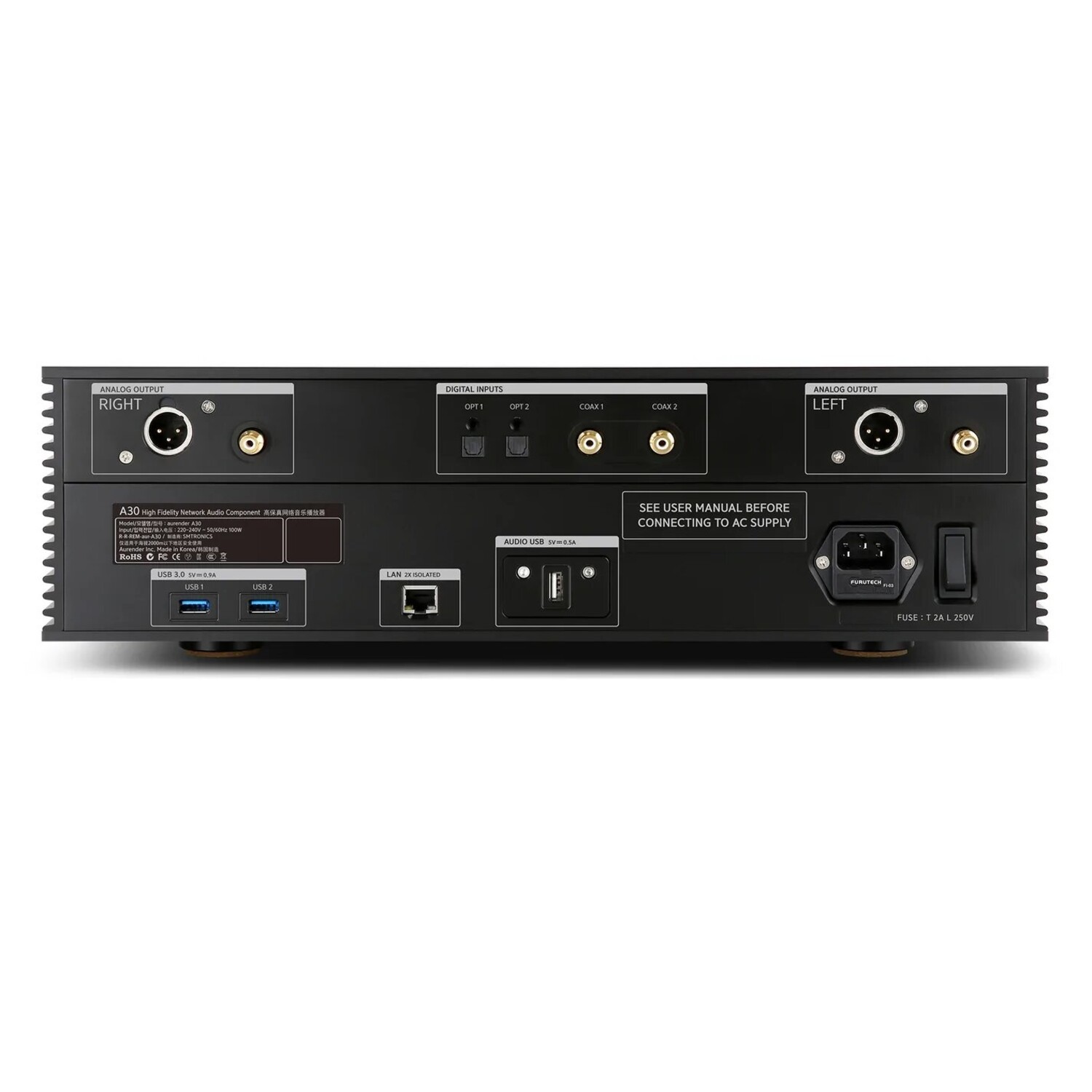Incorporated within the topology of the A30 is a high-quality headphone amplifier suitable for use with the finest headphones. Three different jacks can accommodate the popular balanced and unbalanced jacks found on the best headphones and upgraded aftermarket cables.