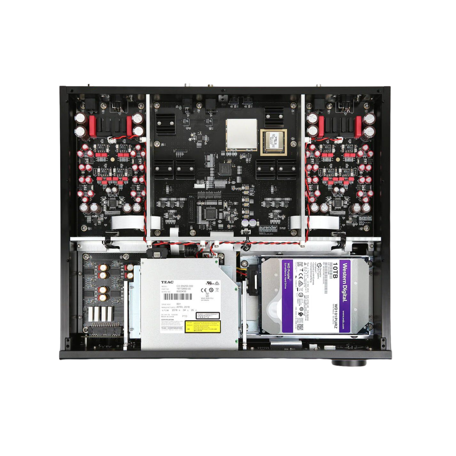 A30’s internal 3.5″ hard drive provide 10 TB of storage and a second 480 GB solid-state drive is used to cache music for playback. If a selected song or album is already cached to the solid-state drive, the hard drive remains asleep. This minimizes wear and tear on the main library hard drive. By caching files to the solid-state drive for playback, electrical and acoustic noise resulting from spinning disks, moving heads and motors are also completely eliminated.