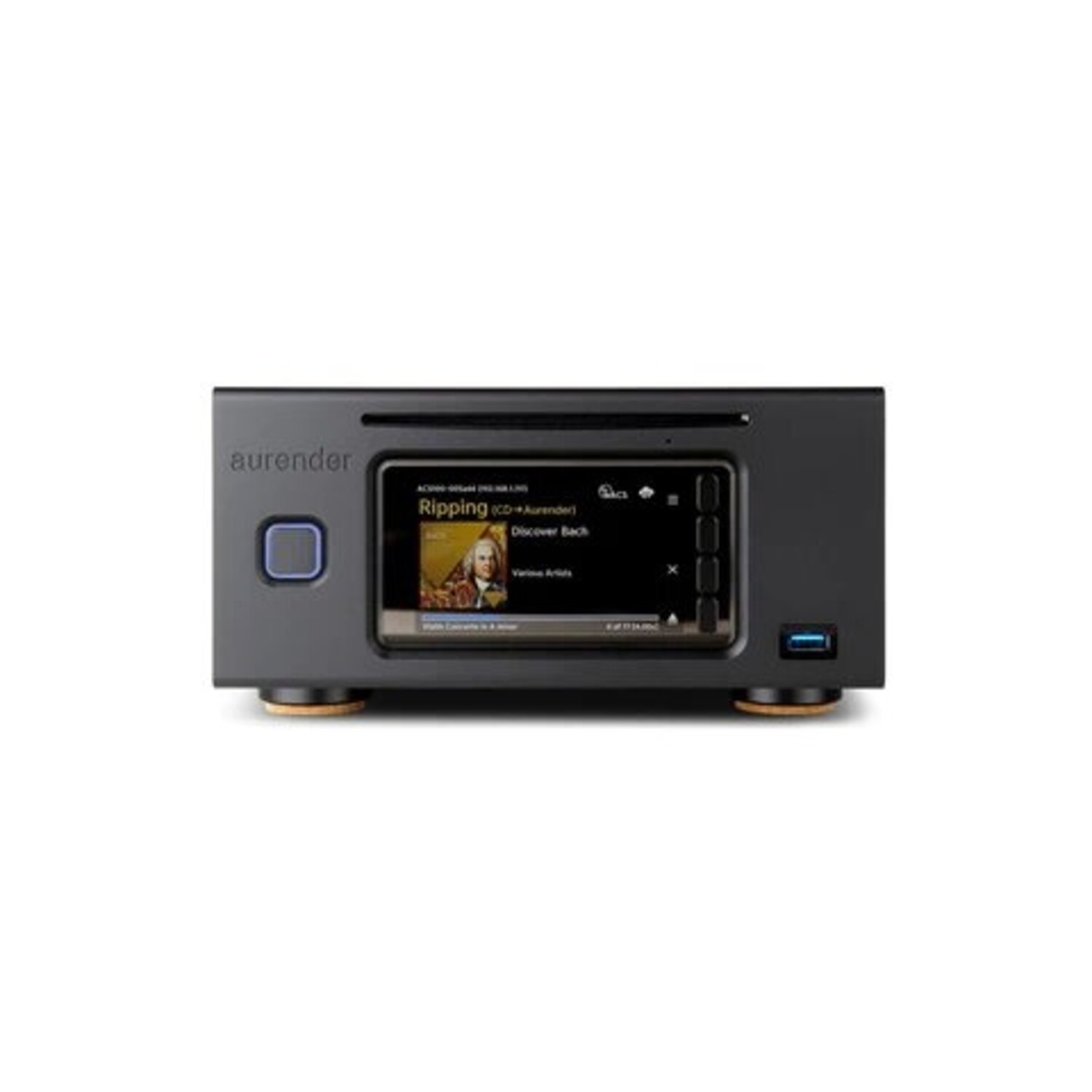 Aurender’s CD ripping engine creates the best sounding files in your choice of FLAC, WAV or AIFF codecs. Metadata is automatically retrieved and the album cover art and other metadata can be viewed on the front panel display. A TEAC CD-ROM drive extracts the CD data in bit-perfect fashion in a one-touch operation and places the file in a user determined folder for immediate playback.