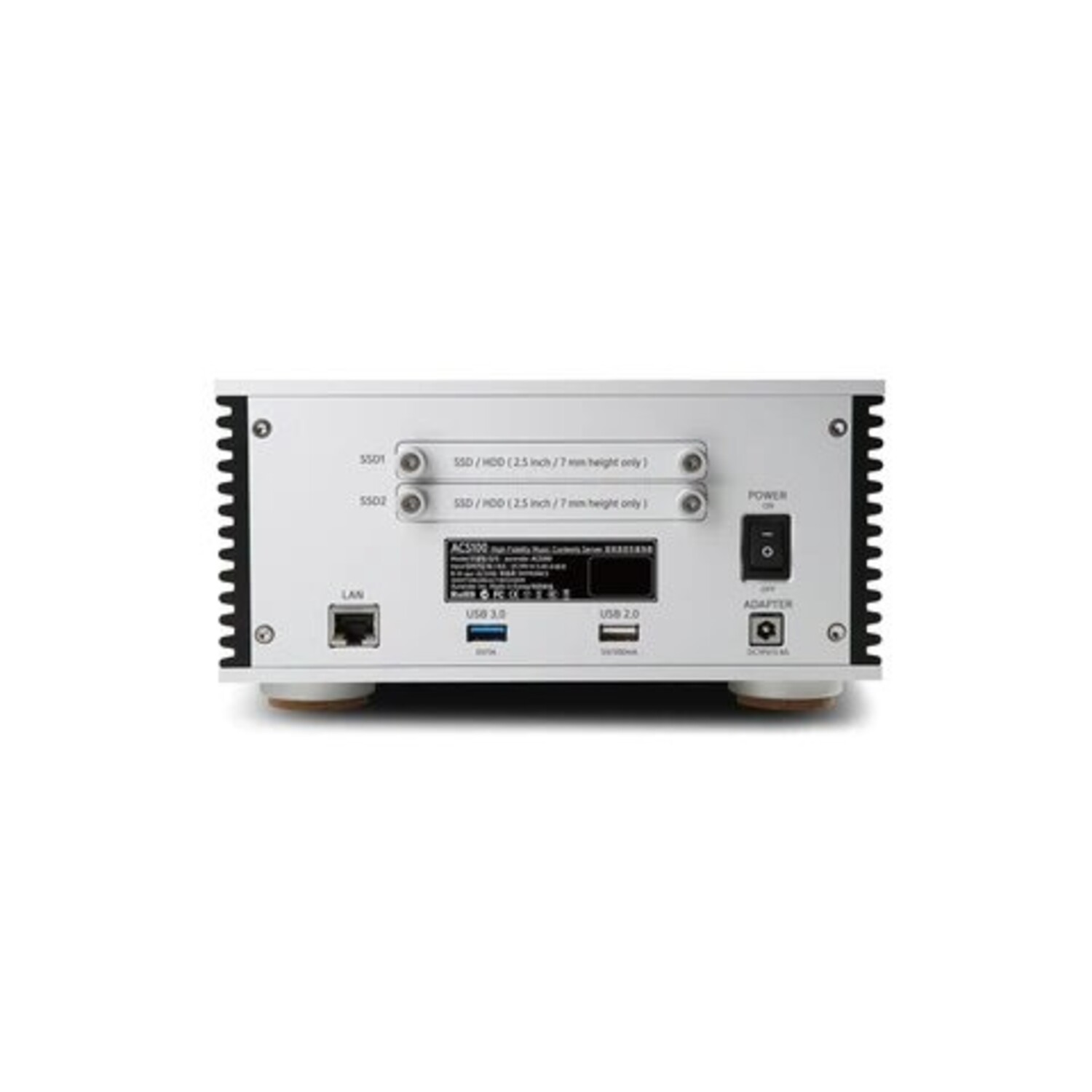 The ACS 100 employs an innovative method of digital audio file playback. Every Aurender uses at least two drives, one or more to store the library, the other for playback. When the user gives the command to play an album, the music moves from the library drive to the SSD caching drive where playback begins. The library drive goes idle reducing both mechanical & electrical noise & lessening wear and tear. With the ACS 100 the user has the ability to install SSDs as library drives, allowing both storage and playback of file-based media to be handled entirely by SSDs.
