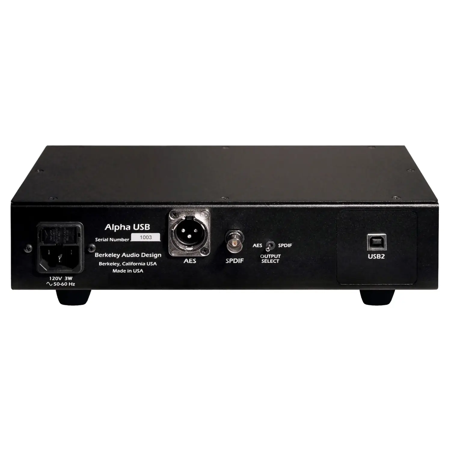 The Alpha USB Reference Series is a noise isolating, reclocking digital audio interface with an asynchronous USB 2.0 high-speed audio input optimized to connect to modern high speed, low latency USB 2.0 high-speed audio drivers. It has selectable coaxial SPDIF or balanced AES/EBU digital audio outputs.