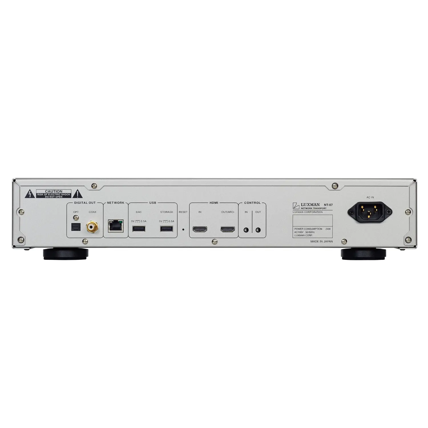 Designed to be paired with an external DAC of your choice, the 3.6" x 17.3" x 15.7" ( H x W x D ) NT-07 exemplifies sonic finesse & exemplary craftsmanship. Playing music with elevated degrees of naturalism, purity, detail, truth, and a touch of warmth, NT-07 is on a par with Luxman’s finest amplification components — and a device that combines technological sophistication, advanced engineering, and top-flight parts to give you, the music listener, countless hours of pleasure and tremendous ease.
