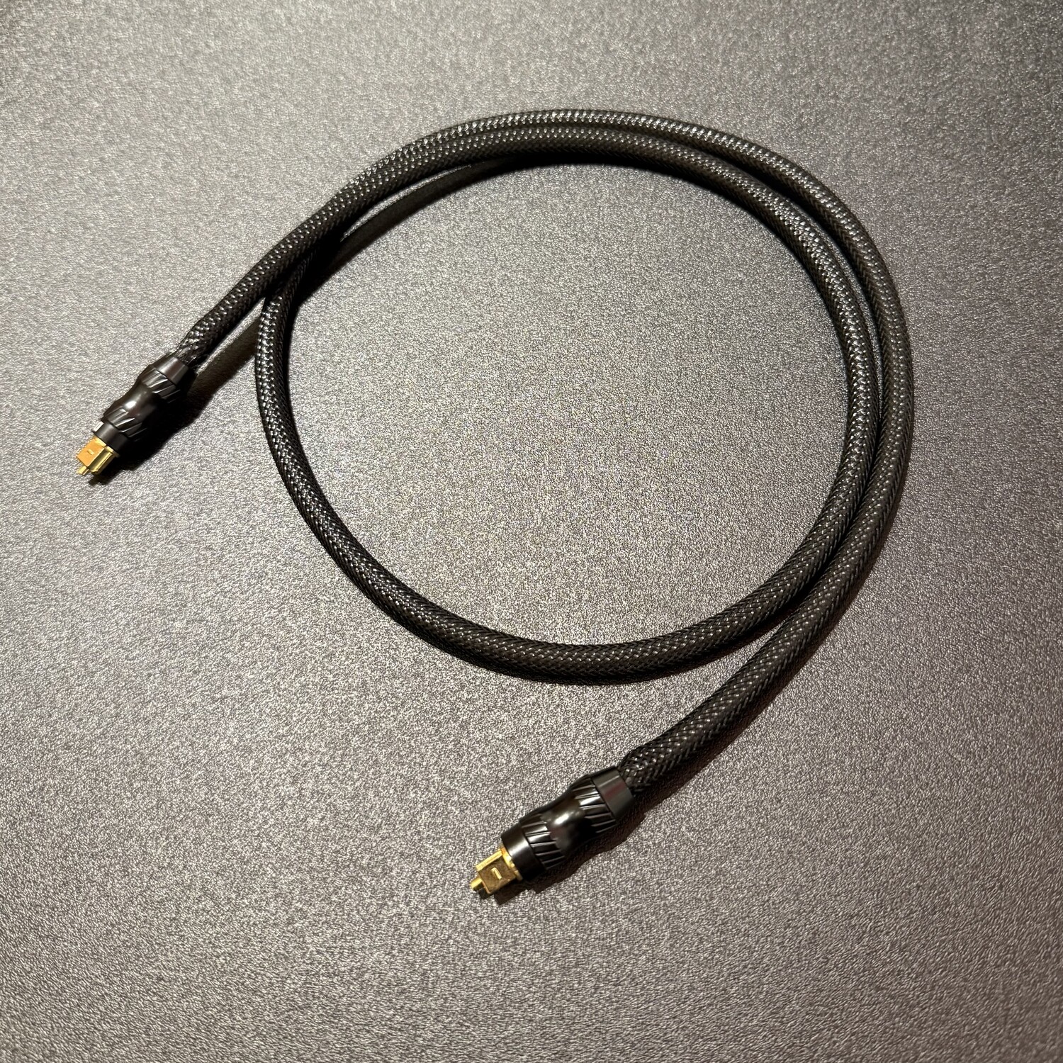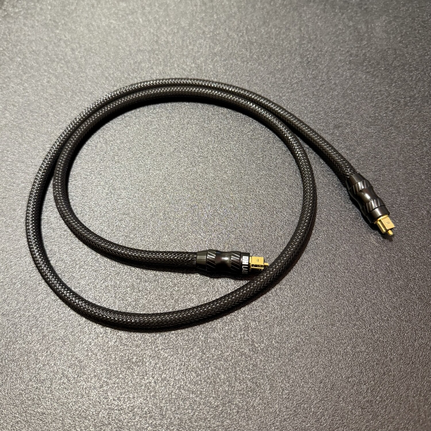 We then add custom machined gold-plated connectors with precision-polished optical-grade lens surfaces at the connection points for reduced jitter. The combined result is the finest optical cable available at any price.