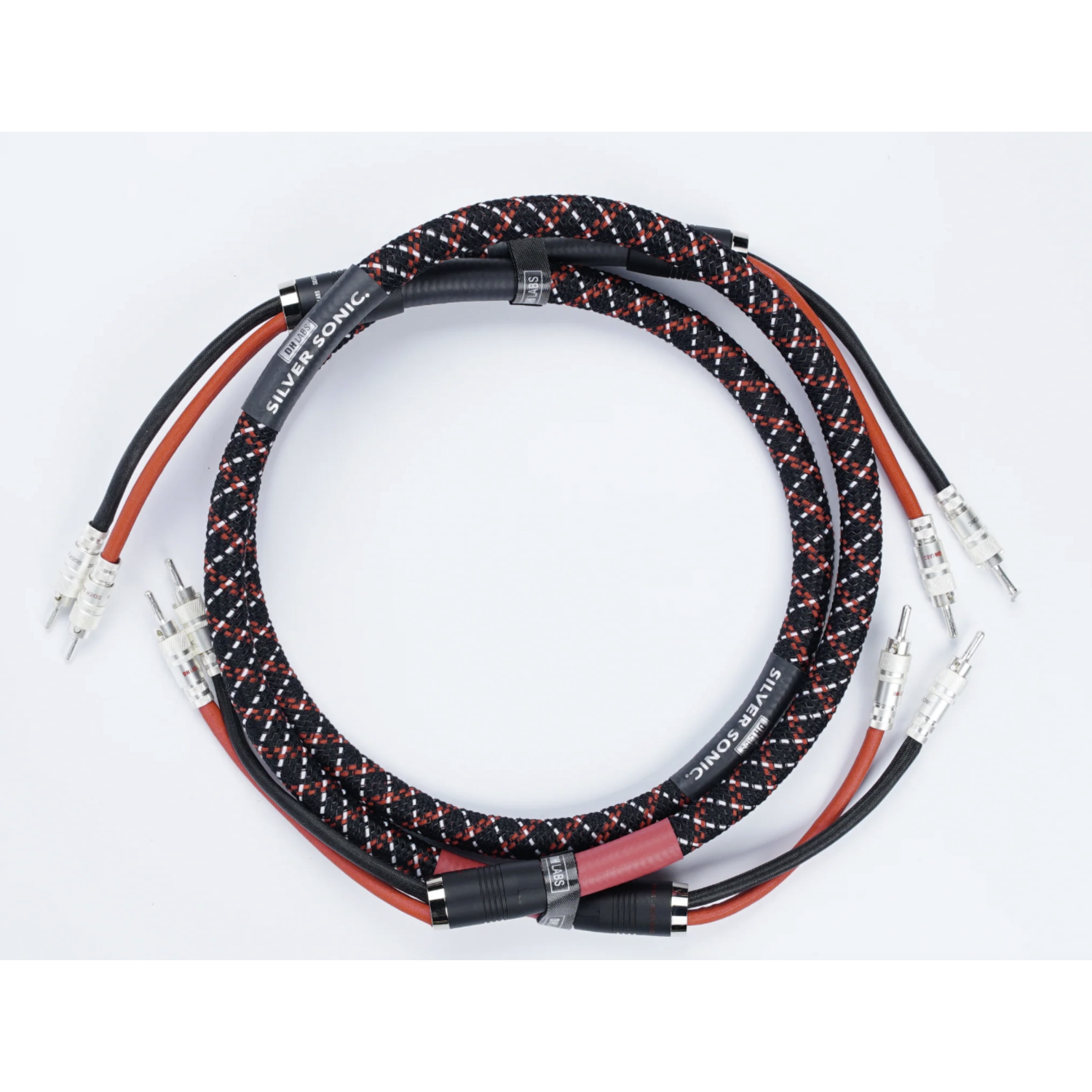 Upgrade your audio setup with the DH Labs Silver Sonic Deity Solid Silver 4ft Speaker Cable, featuring premium locking banana connectors. This demo cable, available from our showroom, is crafted with solid silver for pristine sound clarity, ensuring exceptional detail and dynamic range in your music. Ideal for audiophiles seeking high-quality speaker connections, this cable brings out the best in your system.