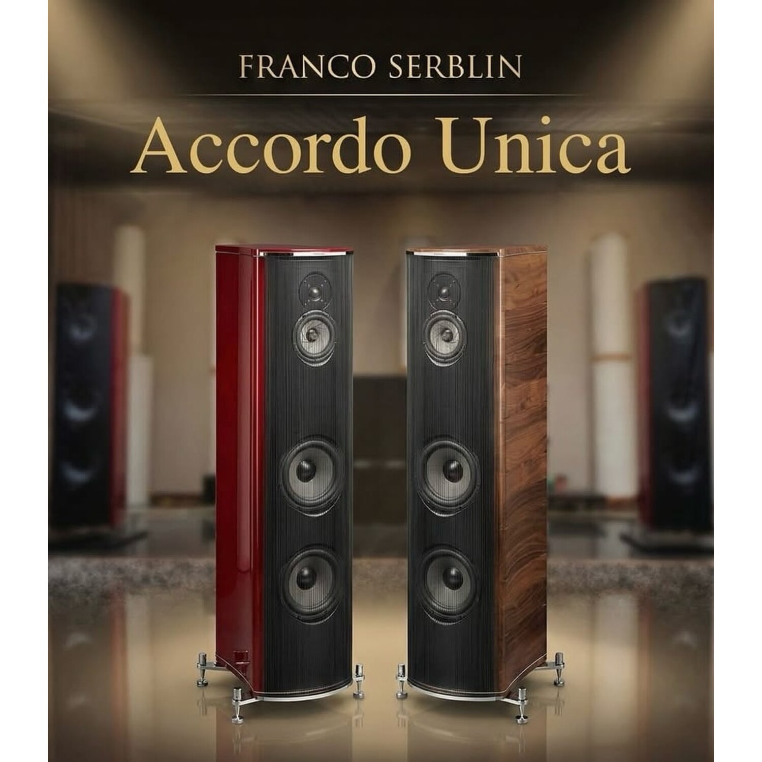 Cabinet’s construction and build quality are strictly connected to function. The integrity of the thirty-two solid walnut components, which define and constitute the enclosure, is achieved by a long ageing, seasoning and drying process. This intensive procedure endows Accordo Unica with its signature tone.
