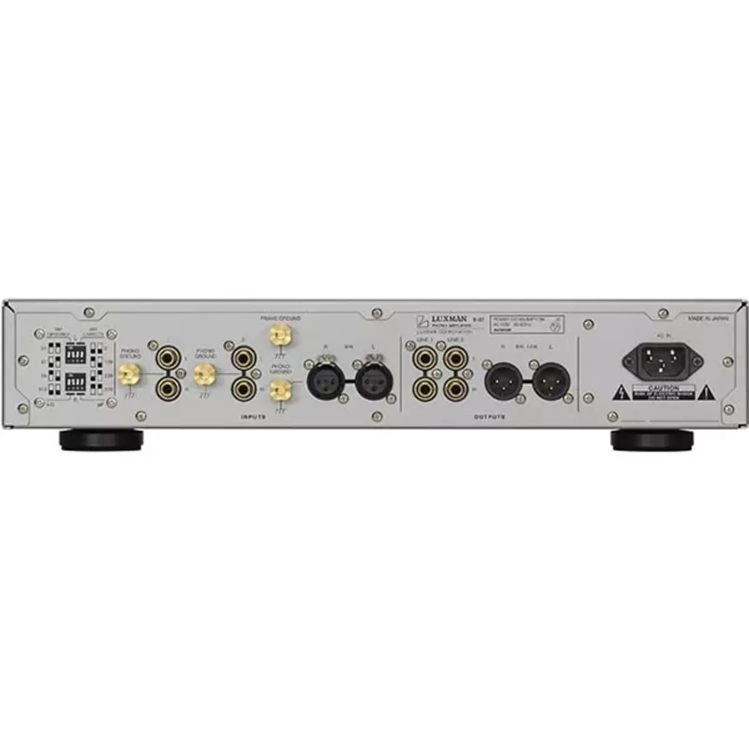 The E-07 is a full-sized phono equalizer amplifier with a semiconductor configuration, following the EQ-500, which was sadly discontinued and had a non-feedback circuit configuration with all-vacuum tube circuits, and the compact standard model E-250, which achieved both high-level sound quality and ease of use, as a new innovation in Luxman's lineup of analog playback components. In order to optimally and accurately amplify the fine music signals picked up from the sound grooves of analog records according to the power generation method and impedance of the cartridge, it is equipped with a changeover switch that allows fine impedance selection in six steps from 4.7Ω to 1kΩ for MC and four steps centered around 47kΩ for MM. The newly developed step-up transformer for MC cartridge step-up, which uses a super permalloy core, is also compatible with balanced inputs that can receive differential signals as they are without losing output energy from the MC cartridge, and is configured as a total of four units with independent LR channels and Low/High gain, making it possible to select the optimal winding for each selected impedance group while improving left and right separation performance. The amplifier circuit is a traditional high S/N/NF type amplifier circuit that achieves low noise by 4-parallelization of the first stage FET while adhering to the RIAA standard equalization curve, and is polished with a group of carefully selected custom parts. In addition, the peripheral circuits for indicators and relay drive and the power supply circuits for the LR channels of the amplifier block are configured with three transformers that are completely separated from the power transformer stage, so that the load fluctuations of each circuit block do not affect each other. The E-07 is a new reference product that thoroughly pursues performance and functions to raise the level of deep analog playback, reproducing a rich sound field and colorful tones that realistically bring out the performer, and will be released by Luxman, which will celebrate its 100th anniversary in 2025, for many audio fans and music fans.
