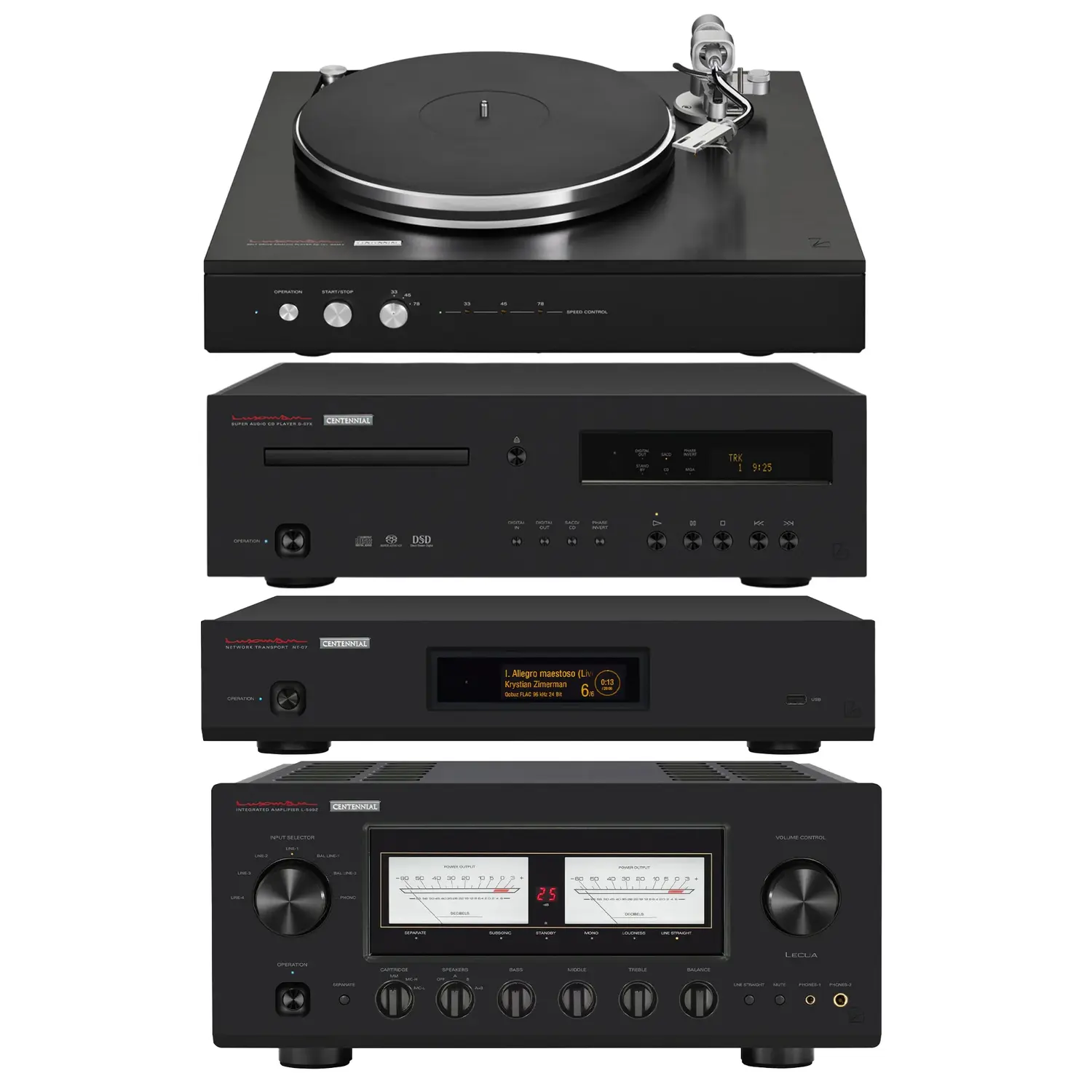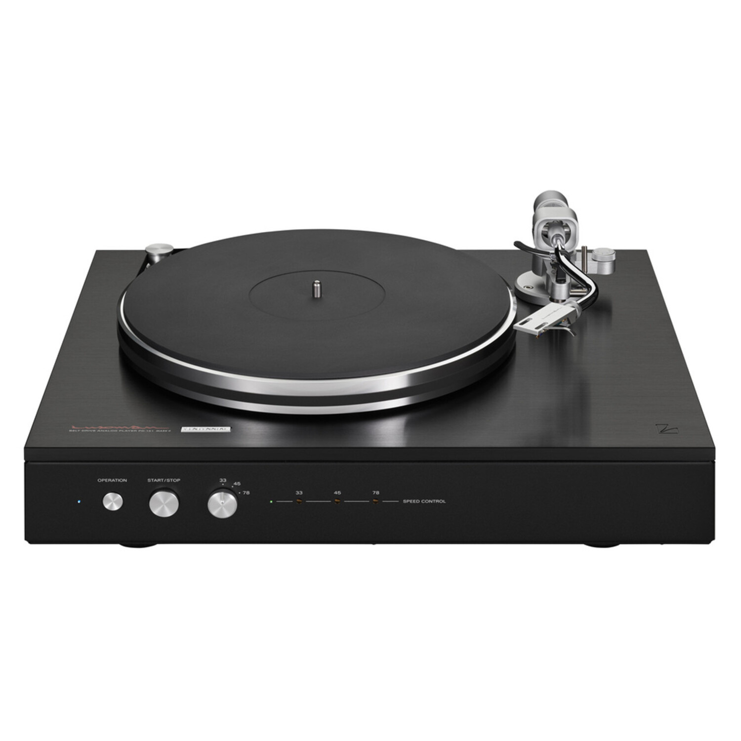 A DC brushless low-speed, high-torque motor is controlled by a Proportional Integral Differential ( PID ) feedback loop. Furthermore, for added precision, according to Luxman, the motor drives the outside flange of the 4kg aluminum platter through an “uncommonly wide belt” for stable 33.3, 45, and 78RPM playback via a speed selector on the front of the turntable where you will also find pitch adjustment, start/stop and power controls. Wow and flutter is stated as 0.04% or less ( WRMS ).