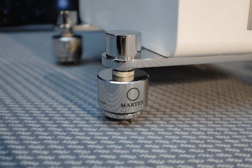 During the A/B demonstration, attendees switched between the white pair with Marten Isolators and the black pair with spikes. The difference was immediately apparent. The music played through the speakers with Marten Isolators exhibited a remarkable difference in clarity and detail. Listeners noted the following enhancements: