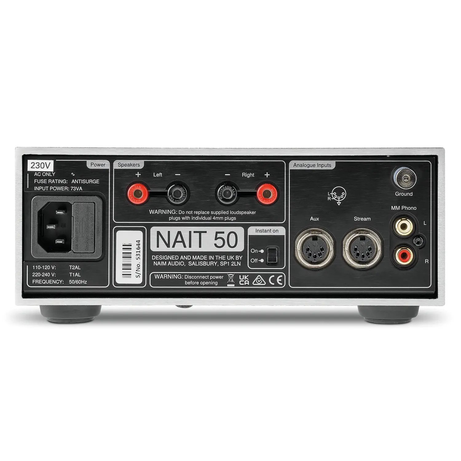 NAIT 50 is a remaster of the famous NAIT 1 integrated amplifier. Naim's experts in Salisbury have carefully recrafted this iconic product with the legendary chrome bumper design from the Naim archives. With Naim’s class-leading modern technology and adding new features such as a headphone outlet, the NAIT 50 is the essence of Naim Audio. Made in England, NAIT 50 is presented in a limited-edition of 1973 pieces.