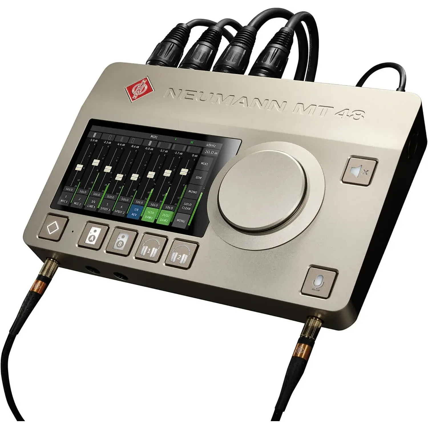 Neumann's reputation for incredible sonic quality has stretched from the beginning of the signal chain, with microphones like the legendary U 67, to the end of it with reference monitors and headphones, like the KH series of nearfield monitors, and headphones like the NDH series. With the introduction of the Neumann MT 48 USB audio interface, they have firmly planted a flag in the center of the signal chain. Featuring a plethora of advanced features and an astounding 136dB signal-to-noise ratio, the MT 48 combines AD/DA converter and digital audio transport technology from the legendary Swiss firm Merging Technology ( hence the "MT" in the name ) with Neumann's own long-standing knowledge of advanced analog audio tech to create a groundbreaking desktop USB-C audio interface and control surface. Easy integration with whatever audio software you use greatly expands the power of your home ( or mobile ) studio.