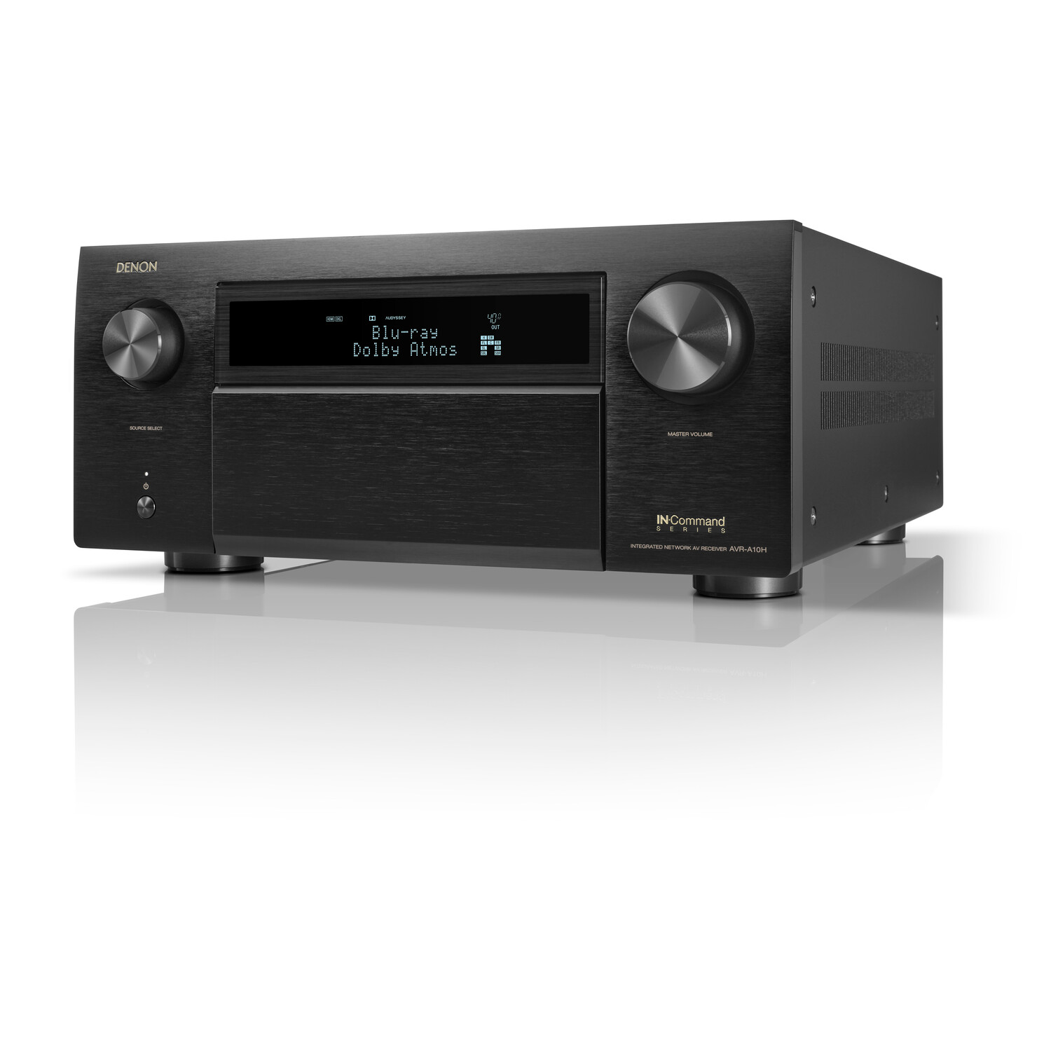 The AVR-A10H features audiophile-grade 32-bit 2-channel DACs and premium components like a low-jitter crystal oscillator and a large transformer and capacitors. Other enhancements include gold-plated speaker terminals and rigid construction that protects against vibration and interference.
