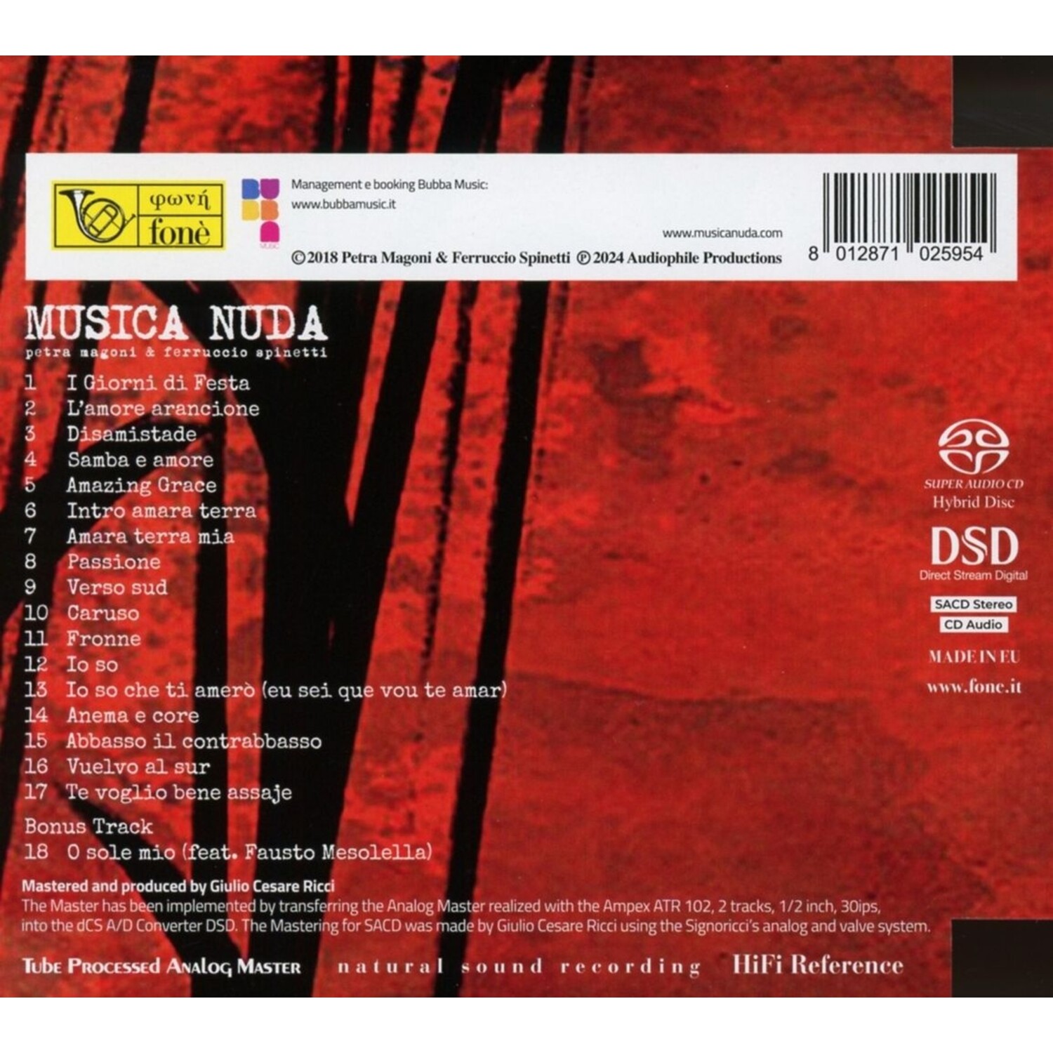 This is the first live vinyl album by the duo Musica Nuda – Petra Magoni and Ferruccio Spinetti recorded during the Musica delle Tradizioni Festival in September 2016 in Vicenza. Thanks to the presence of the public of the Teatro Comunale di Vicenza, Petra Magoni voice and Ferruccio Spinetti double bass have given life to an even more exciting and extraordinary interpretation. VERSO SUD is a journey into the musical South of Italy and of the world in pure Musica Nuda style, that is “instinct and freedom” both in choosing the repertoire and in the way of interpreting it, lightly but never without lipstick.