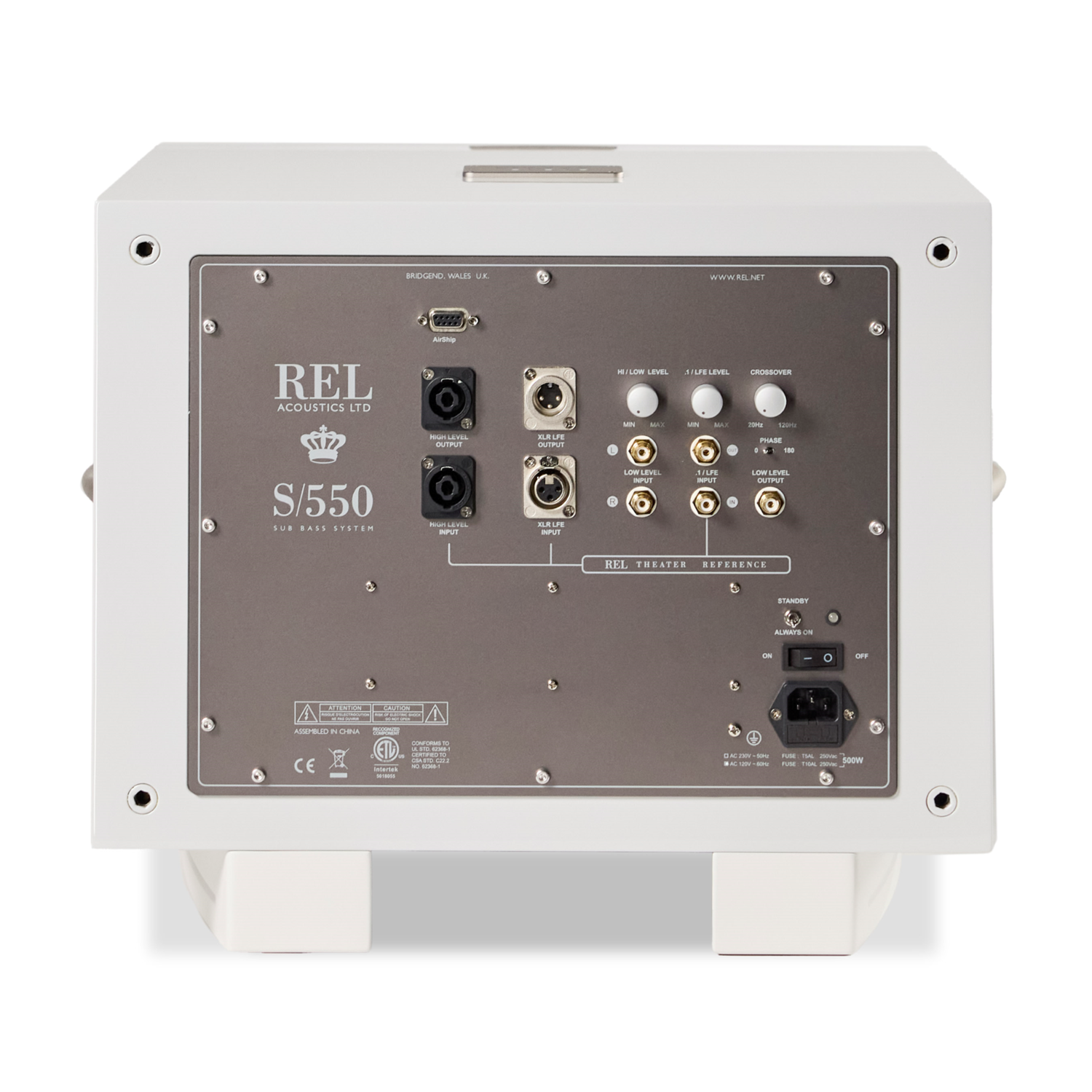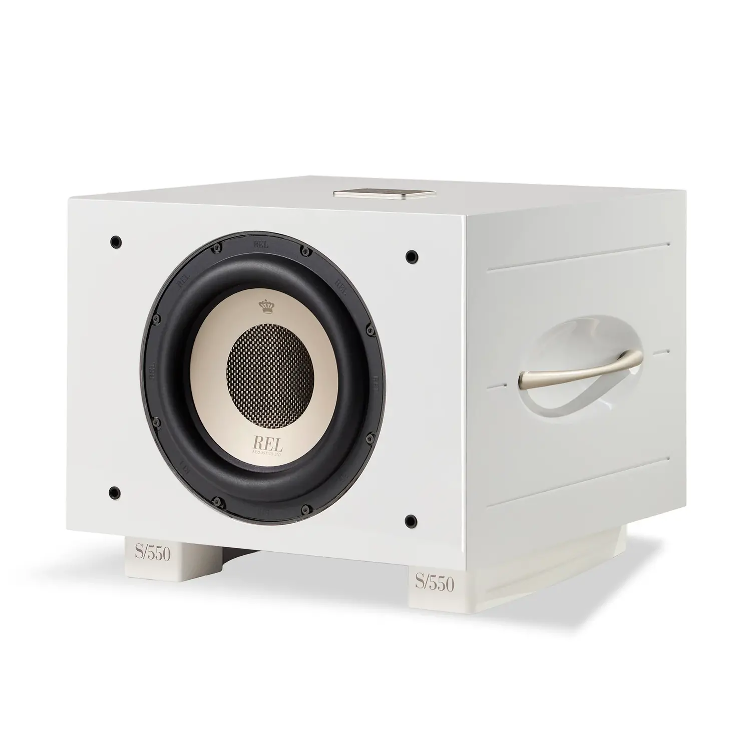 The S/550 carries the DNA of the S/850 in a more compact form, engineered for medium rooms and dual-use systems. Its redesigned 10" active driver and 12" passive radiator deliver faster response, greater travel, and bass that is louder, richer, and more effortless than ever before.