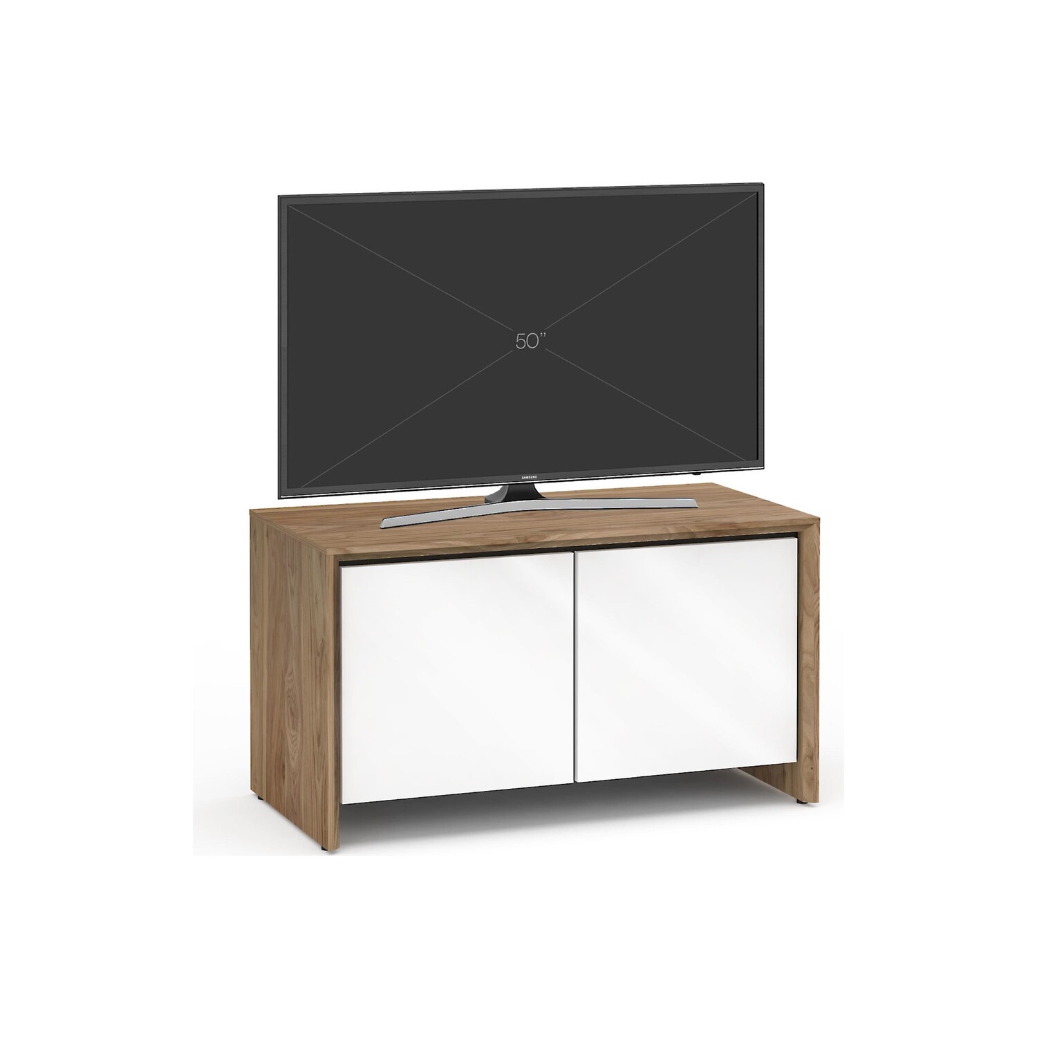 The Barcelona 221 features a natural walnut finish, precision miter joints and clean, beveled edges. This finely crafted cabinet has a rock-solid extruded aluminum frame. The 221's cabinet top can support a TV up to 50” and weighing up to 350 lbs. The two-component compartments each have an adjustable shelf that can be set to any height. The solid doors feature soft-close door dampeners.