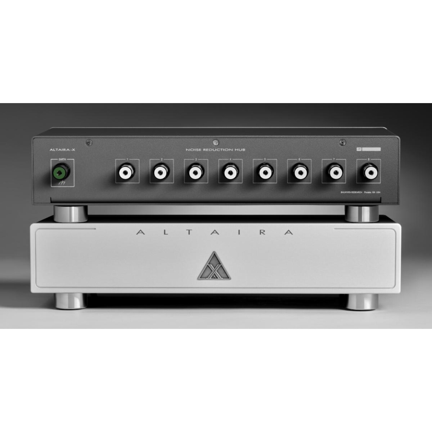 The Altaira-X ground hub is the ultimate expression of Shunyata Research's ground noise reduction technology. Building on the success of the Product of the Year award-winning Altaira Ground System, Altaira-X represents a bold design progression that brings a dramatic increase in noise reduction and component isolation. Its eight independently filtered terminals create a profoundly quiet foundation for recording, mastering, or high-end listening systems striving for ultimate performance.