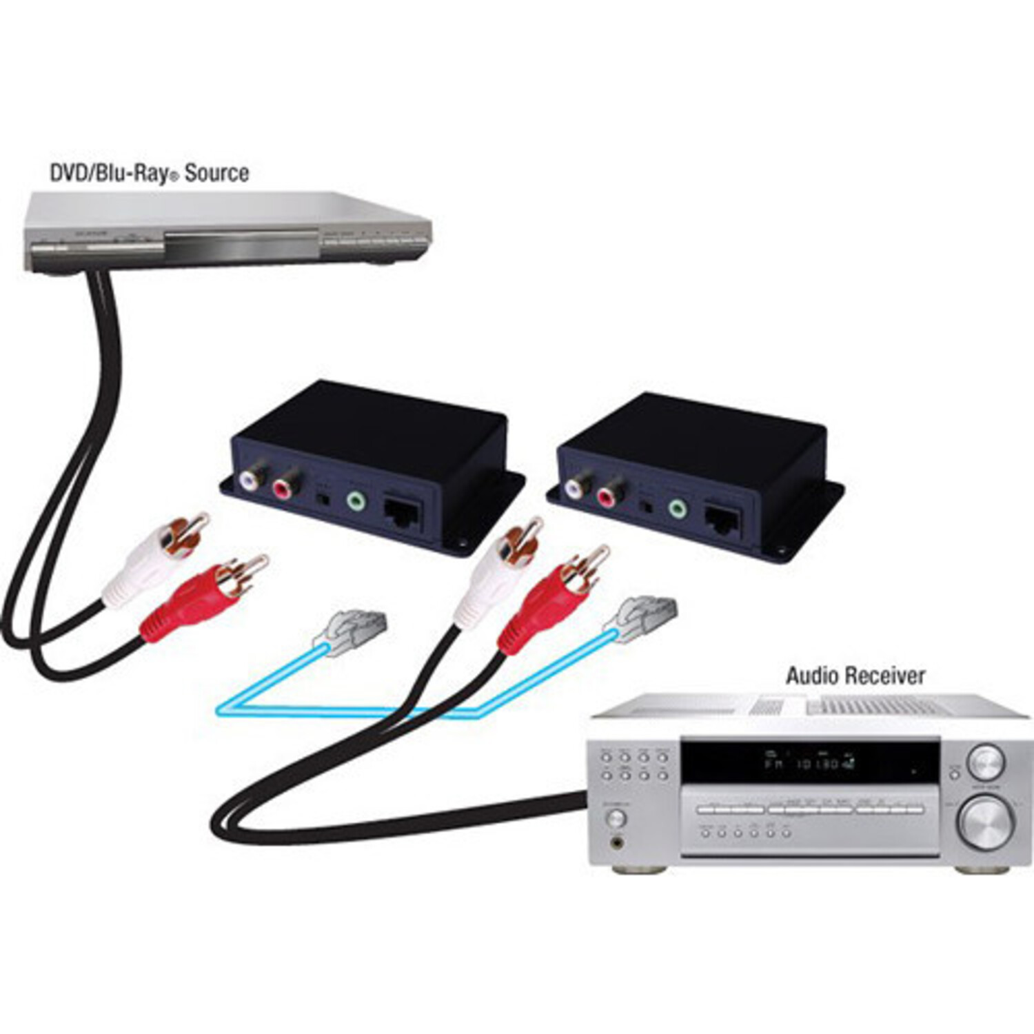 - Used in pairs via Cat5 UTP cable to send stereo audio or mini stereo audio signal up to 600 meters